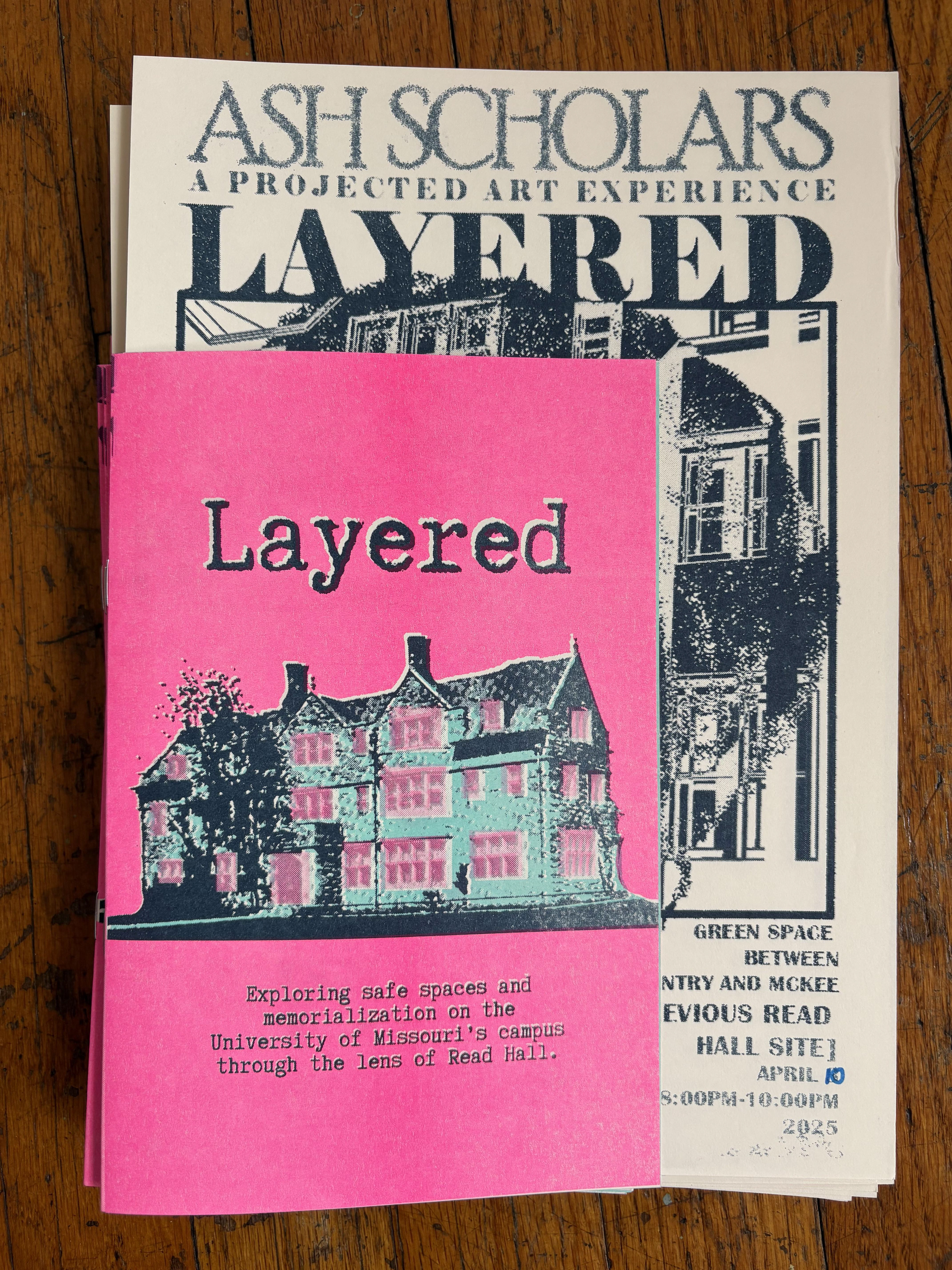 The collaborative zine “Layered” was an amalgamation of months-long research about safe spaces and women’s experiences on college campuses.The zine contains photographs from the photo voice qualitative research method, which was part of a art exhibition focusing on memorialization.